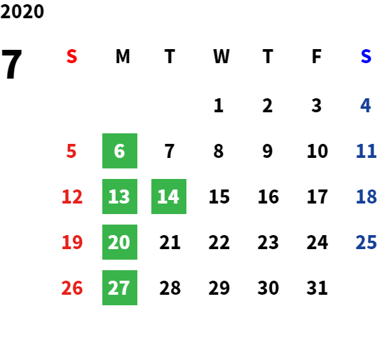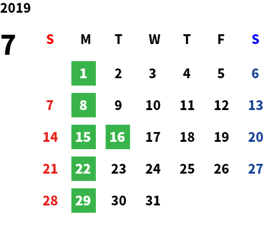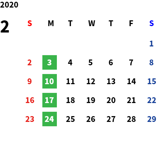 毎週月曜日・第2火曜日