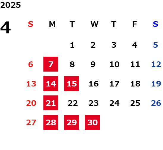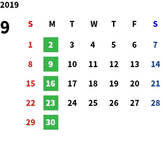 毎週月曜日・第2火曜日