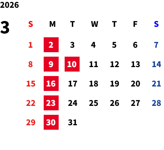 毎週月曜日・第2火曜日